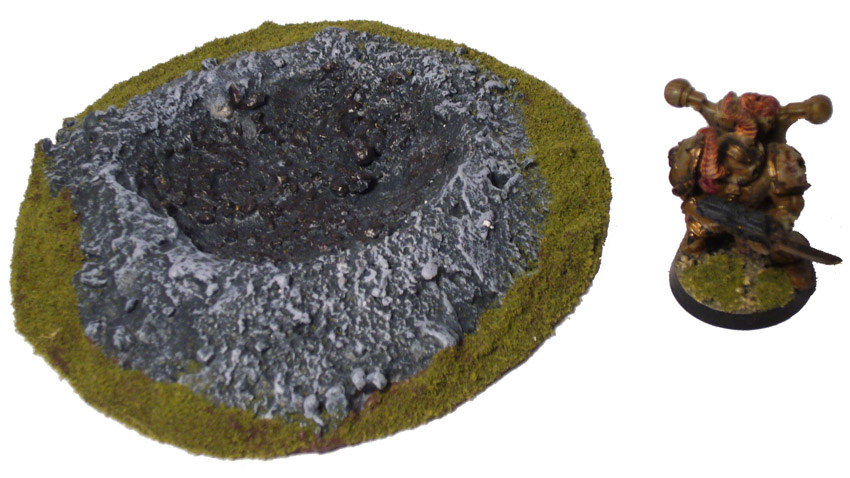 Hand made model of a crater for Warhammer 40k, but suitable for any 1:36 scale game