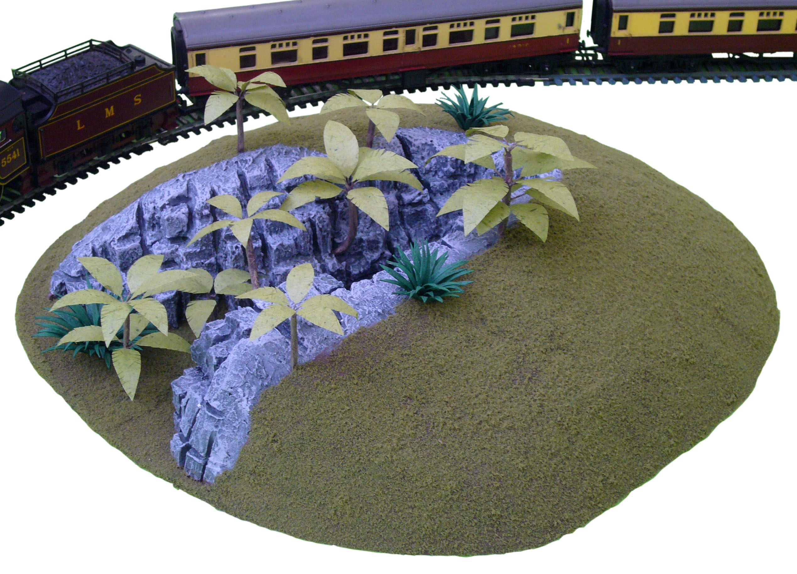 Hand made model of a rocky crevasse for a model train setOverall dimensions: 320 (l) x 300 x 95mm (h)Scale: HO (1:87)Location: Hamilton, New ZealandDate: 2012Cost: NZ$100.00 + Postage