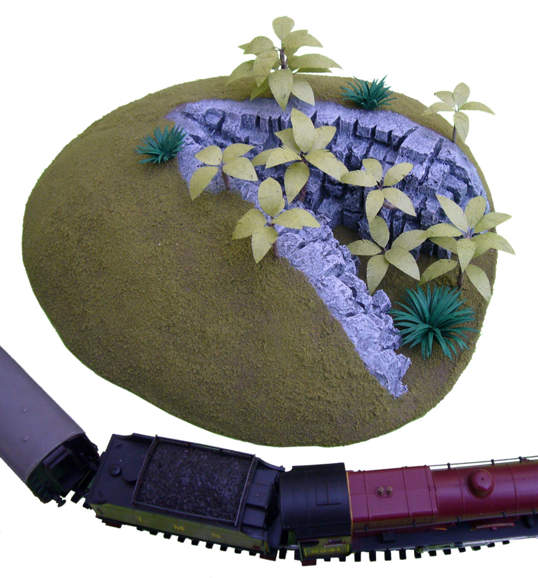 Hand made model of a rocky crevasse for a model train set