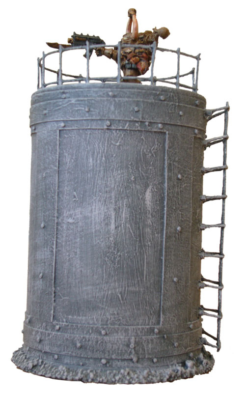 Hand made model of a silo for Warhammer 40k, but suitable for any 1:36 scale gameOverall dimensions: 75 (l) x 75 x 130mm (h)Scale: 1:36Location: Nelson, New ZealandDate: 2004Cost: NZ$50.00 + Postage