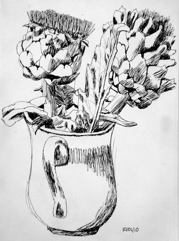 I have been drawing and painting my entire life, these works of still life’s and landscapes have been drawn from 2007 to present. I generally work using pencil, pen, and gouache paint