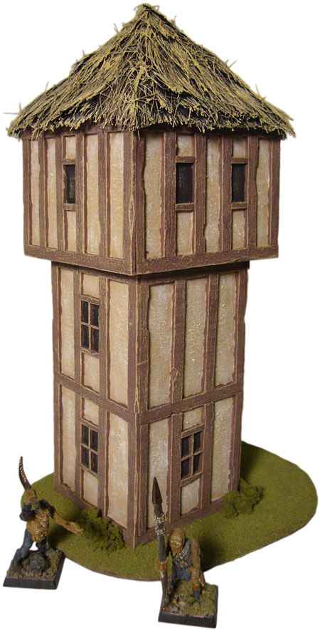 Hand made model of a watch tower for Warhammer fantasy, but suitable for any 1:36 scale gameOverall dimensions: 140 (l) x 110 x 215mm (h)Scale: 1:36Location: Nelson, New ZealandDate: 2005Cost: NZ$70.00 + Postage