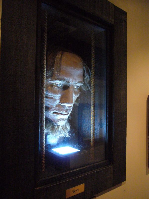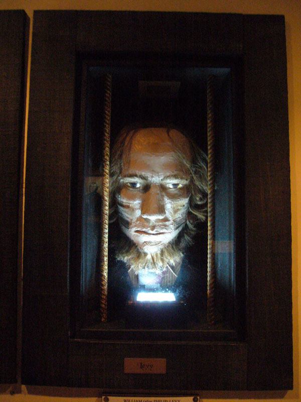 Hand made bust of an infamous member of Nelson, New Zealand’s history, William Levy. He was one of the four members of the Burgess Gang, who were responsible for the murder of five people on the Maungatapu track, near Nelson, in 1866. It is on display in a glass cabinet at The Verdict Bar in Nelson, which has a theme of the Maungatapu Murderers